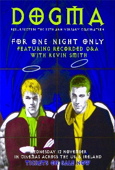Two fallen angels, Bartleby (Ben Affleck) and Loki (Matt Damon), discover a loophole in Catholic doctrine that could allow them to return to Heaven, threatening the very fabric of existence. To stop them, a group of unlikely heroes?including a faith-struggling woman (Linda Fiorentino), the erased 13th Apostle (Chris Rock), Jay (Jason Mewes) and Silent Bob (Kevin Smith)?must prevent the apocalypse. With irreverent humor and sharp satire, Dogma explores faith, salvation, and the human experience.